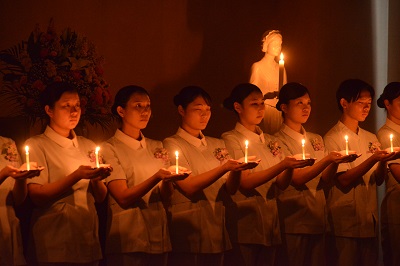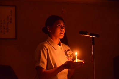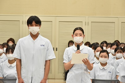 また、16回生の誓いを皆で話し合い、「個別性に配慮した患者主体の看護ができるよう、看護師としての役割を自覚し、自己研鑽に励みます。そして、言葉や態度に責任をもち、自己を反省し、誠実さをもった看護師になります。」と宣誓しました。